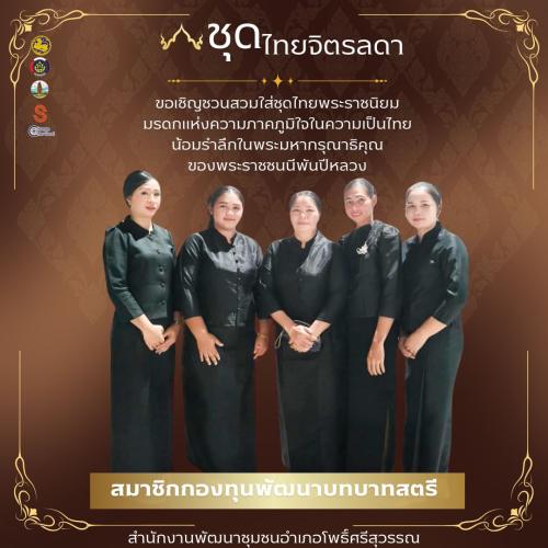 📑นางสาวนงค์เยาว์ พรหมทา พัฒนาการอำเภอโพธิ์ศรีสุวรรณและสมาชิกกองทุนพัฒนาบทบาทสตรี อำเภอโพธิ์ศรีสุวรรณ จังหวัดศรีสะเกษ ขอเชิญชวนสวมใส่ชุดไทยพระราชนิยมทั้ง 8 แบบ มรดกแห่งความภาคภูมิใจในความเป็นไทย น้อมรำลึกในพระมหากรุณาธิคุณของพระราชชนนีพันปีหลวง ซึ่งเป็นสมบัติของเเผ่นดินไทยและคนไทยทุกคนที่แสดงออกถึงความเรียบร้อยสง่างาม ร่วมสืบสาน ซึ่งมรดกทางวัฒนธรรมอันล้ำค่าของชาติสืบไป