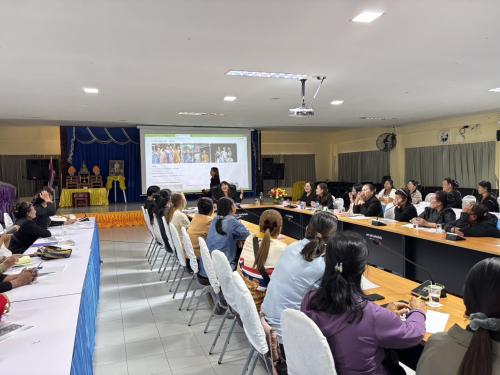 โดย นางทรัพย์สิน โพธิ์ขาว พัฒนาการจังหวัดศรีสะเกษ ประธานกิจกรรม Coaching ผ้าลายพระราชทาน "ลายขอ สมเด็จฯ - เจ้าฟ้าฯ" พร้อมด้วย ผู้อำนวยการกลุ่มงานส่งเสริมการพัฒนาชุมชน เจ้าหน้าที่พัฒนาชุมชน เเละตัวเเทนกลุ่มทอผ้าทั้ง 22 อำเภอ เข้าร่วมกิจกรรม ทั้งนี้ การจัดกิจกรรมในครั้งนี้มีวัตถุประสงค์เพื่อพัฒนาความรู้และทักษะในการผลิตและประยุกต์ใช้ผ้าลายพระราชทาน ยกระดับคุณภาพและมูลค่า ส่งเสริมอัตลักษณ์ท้องถิ่น และสร้างความยั่งยืนทางเศรษฐกิจและภูมิปัญญาไทย ณ ห้องประชุมเทศบาลตำบลห้วยทับทัน อำเภอห้วยทับทัน จังหวัดศรีสะเกษ
